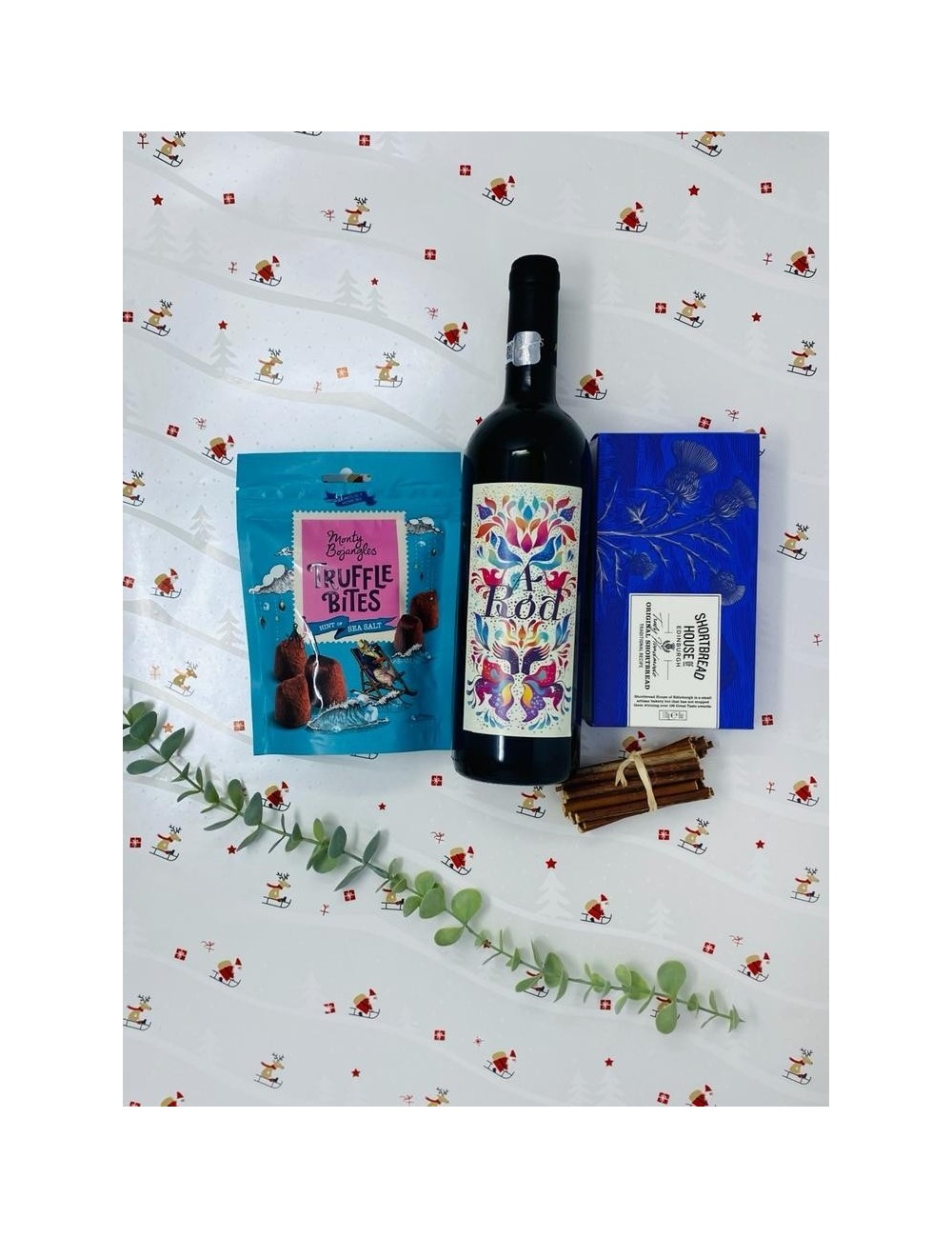 GENTLE GIFT este un cadou savuros si fin, care iti invaluie toate simturile! Pachetul cadou include: VIN ROSU A ROD CABERNET SAUVIGNON 750 ml Vin rosu A Rod Cabernet Sauvignon este un vin sec de pe dealurile Domeniului Vila Dobrusa. Acest Cabernet Sauvignon are un buchet expresiv de mure, dezvaluind o rotunjime suculenta si fina in cerul gurii. MONTY BOJANGLES TRUFFLE BITES - CUTIE CU TRUFE DE CIOCOLATA SI SARE DE MARE 100G O experienta de ciocolata neteda si delicioasa cu aroma de caramel si biscuiti crocanti. Notele calde de caramel completeaza perfect untul si biscuitii. Contine 15 trufe delicioase. BISCUITI ARTIZANALI CU UNT "ORIGINAL RECIPE" 170 G Cutia contine 16 mini biscuiti scotieni artizanali, cu o aroma minunata, cadoul perfect pentru prieteni si familie de Craciun, zile de nastere sau orice alta ocazie speciala sau pur si simplu pentru rasfat. CUTIE PENTRU CADOU