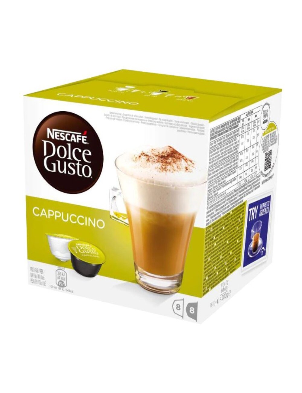 Clasica si iconica in acelasi timp, indragita de iubitorii de cafea din toata lumea, cafeaua NESCAFÉ® Dolce Gusto® Cappuccino imbina delicat gustul intens al unui espresso consistent cu laptele cu textura fina, invaluite intr-o spuma catifelata si densa. Aceasta cafea este o experienta desavarsita, indiferent de ocazie. Cafeaua NESCAFÉ® Dolce Gusto® Cappuccino se remarca prin gustul echilibrat si intens al boabelor de cafea prajite cu grija, pus in valoare de finetea laptelui si dulceata blanda a zaharului.