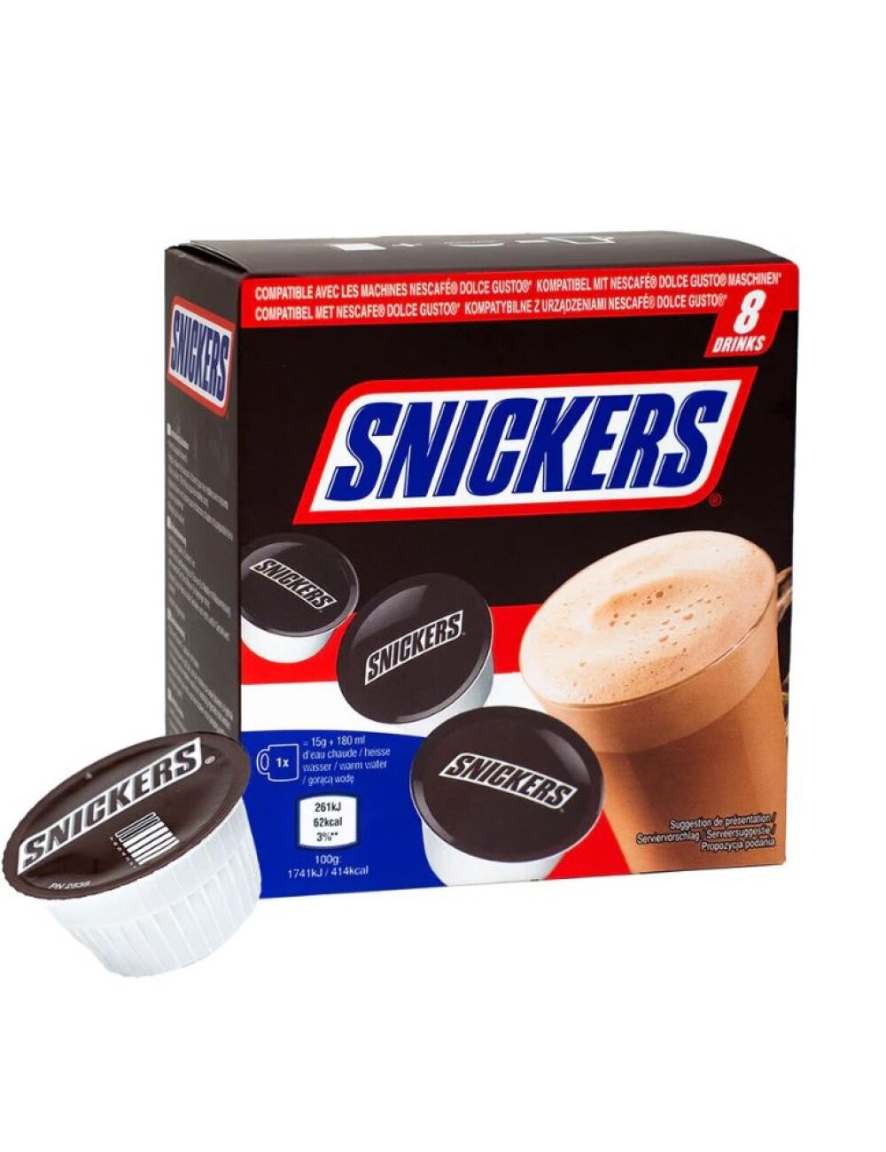 Capsulele de ciocolată caldă Snickers au fost special create pentru a fi utilizate în mașina ta Nescafé Dolce Gusto, făcând procesul de preparare extrem de simplu și rapid. În doar câteva secunde vei obține o băutură delicioasă, cu o spumă fină și o textură catifelată. Fiecare înghițitură va aduce cu sine dulceața ciocolatei, savoarea caramelului și prospețimea cafelei, creând o experiență deosebită pe care nu vei vrea s-o ratezi.