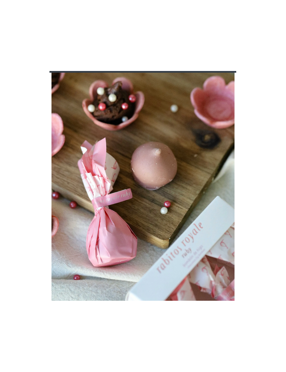 Ce este ciocolata ruby: o varietate inovatoare de ciocolată care se remarcă prin culoarea sa distinctivă roz, care provine în mod natural din boabele de cacao Ruby. Această ciocolată are o aromă și o gustare unică, cu note subtile de fructe roșii, precum căpșuni și zmeură. Ceea ce o diferențiază de ciocolata neagră, albă sau cu lapte este absența aromei de cacao prăjită, permițând astfel fructelor roșii să se evidențieze.