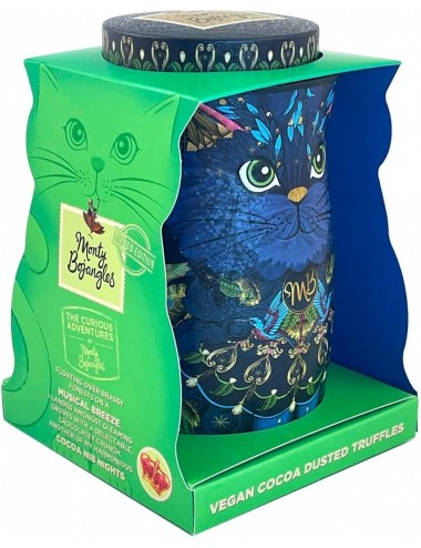Monty Bojangles sunt cele mai gustoase delicii din regat, castigand multe premii Great Taste in fiecare an, facand din Monty Bojangles un mare producator de gustari si trufe de ciocolata, exceptional de delicioase! Potrivit pentru vegani si adorat de toata lumea. Fiecare cutie este conceputa in mod unic ca o pisica frumoasa si fantastica, fiecare cu propria personalitate si propriul farmec! Cutia contine 14 trufe ambalate individual, de dimensiunea potrivita pentru o delectare indulgenta.