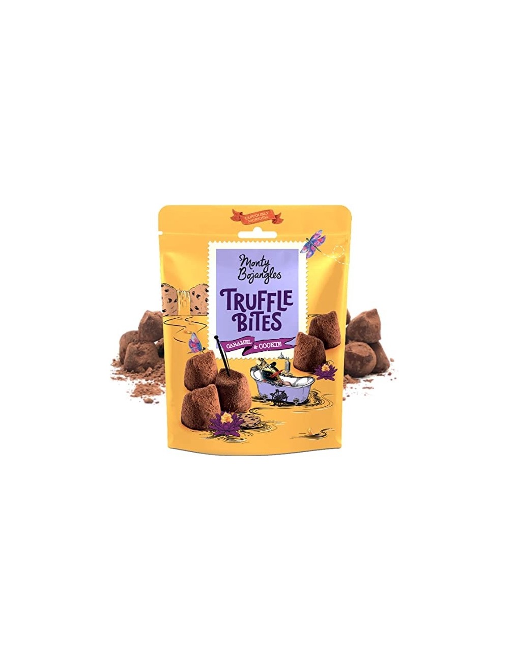 O cutie de MONTY BOJANGLES TRUFFLE BITES contine trufe cu caramel si biscuiti, preparate din cele mai calitative ingrediente. Aceste trufe sunt potrivite pentru vegetarieni.