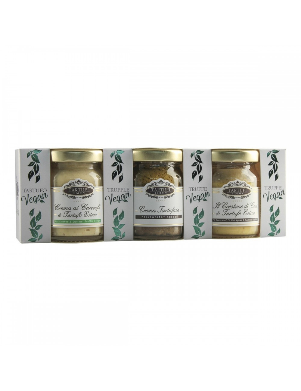 Din cele mai autentice elemente ale țării noastre provine un trio magnific de arome delicioase într-o versiune vegană. Crema de anghinare și trufe de vară, cremă de trufe și Crostonă de naut și trufă de vară sunt propunerile noastre pentru bucătăria ta „vegană”. Pachetul conține: - 1 borcan de 50 g de anghinare și cremă de trufă de vară - 1 borcan de 50g Cremă de trufe - 1 borcan de 50g de naut și crustonă de trufă de vară