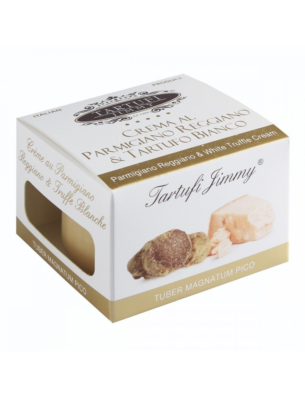 Best-sellerul nostru din linia de crema, excelenta italiana a Parmigiano Reggiano DOP combinata cu delicatetea trufei albe dau viata unei arome unice si rafinate. In noul design intr-o cutie cadou, infrumusetat cu detalii aurii pentru a da un plus de eleganta liniei tale. Ingrediente: Crema proaspata, Parmigiano Reggiano DOP 25% (lapte, sare, cheag), Lapte, Un, Amidon de porumb, Trufa alba 1,5% (Tuber magnatum Pico), Lecitina de floarea soarelui, sare, Aroma naturala. Poate contine urme sau spori din genul Tuber spp. Alergeni: lapte si produse pe baza de lapte. Valori nutritive (100g): Valoarea energetica Kj 1427 / Kcal 341, Grasime 31,9 g - din care saturati 4,3 g, Carbohidrati 4,4 g - din care zaharuri 1,4 g, Proteine 9,2 g, Fibra 0,1 g, Sare 0,7 g. Utilizare: perfect pentru crema de risotto sau ca baza pentru preparate din carne. Se recomanda aproximativ 40g de persoana. Mod de depozitare: A se pastra intr-un loc racoros si uscat, departe de umiditate si surse de lumina si caldura. Greutate: 90g